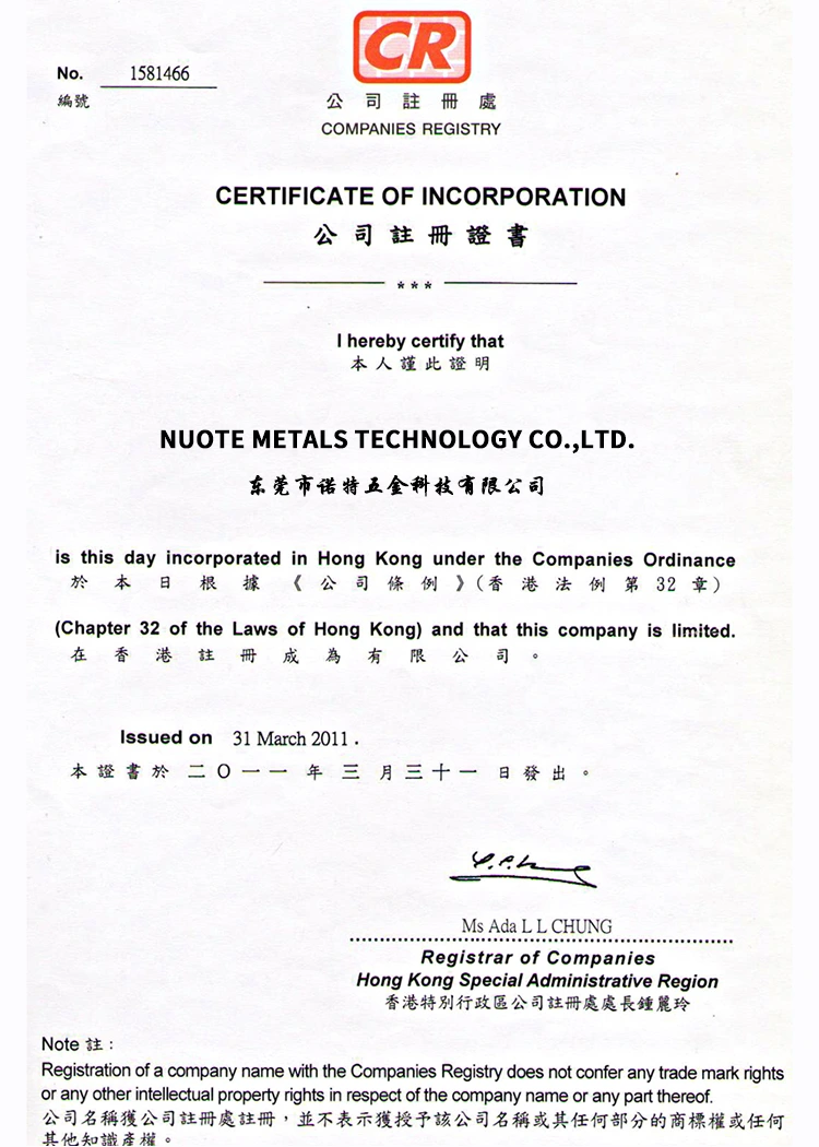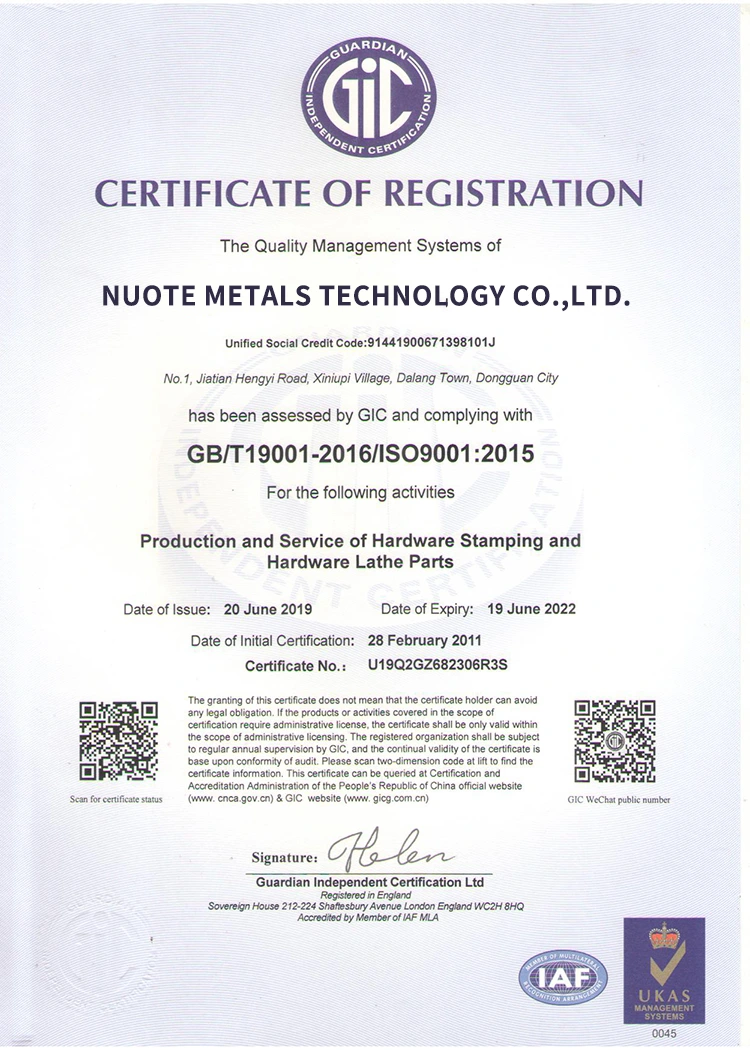 Chúng tôi là Nuote Metals đến từ Đông Quan, Trung Quốc.