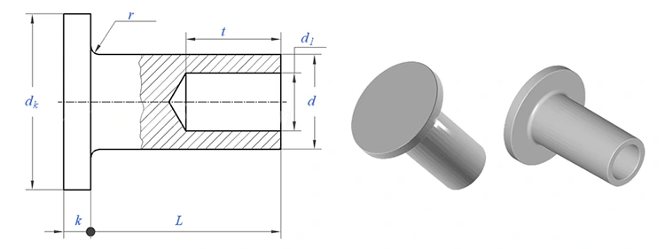Đầu tròn nửa đinh tán rỗng
