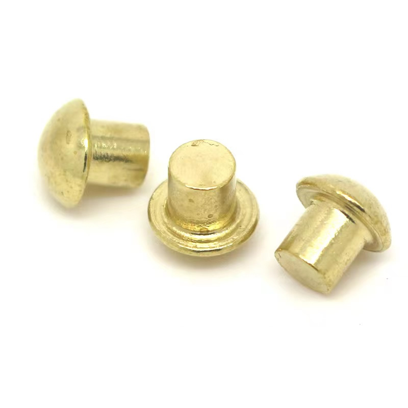 | Đinh tán hình bán nguyệt bằng đồng thau | 20–40% thân (cuối đuôi) | Trung bình (ít hơn 30–50% so với chất rắn) | 80–95% chất rắn | Lắp ráp chung, kết nối điện tải trung bình, trục quay đồ nội thất |